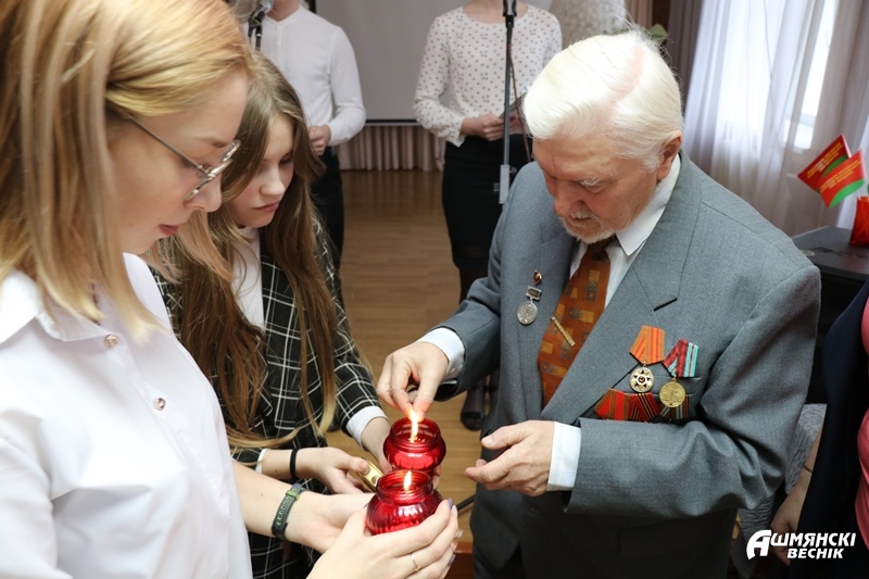На открытии, которое состоялось в центре творчества детей и молодежи, присутствовали пионеры, активисты ОО «БРСМ», участники волонтерского движения городских школ. Первый секретарь райкома общественной организации БРСМ Юлия Субач и ветеран труда, несовершеннолетний узник фашистских лагерей Василий Жевняк.