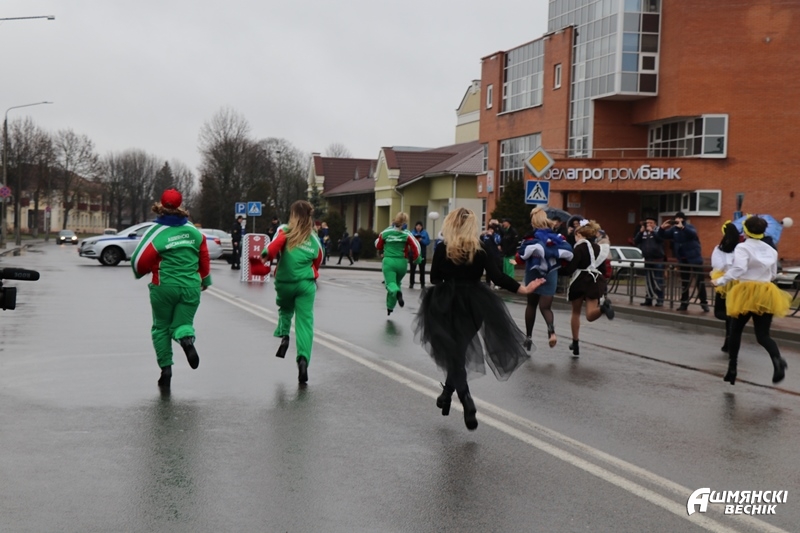 7 марта в Ошмянах прошел костюмированный забег на каблуках, приуроченный к Международному женскому дню. Основными критериями участия были обувь на каблуке не ниже 5 см, яркий и креативный образ.