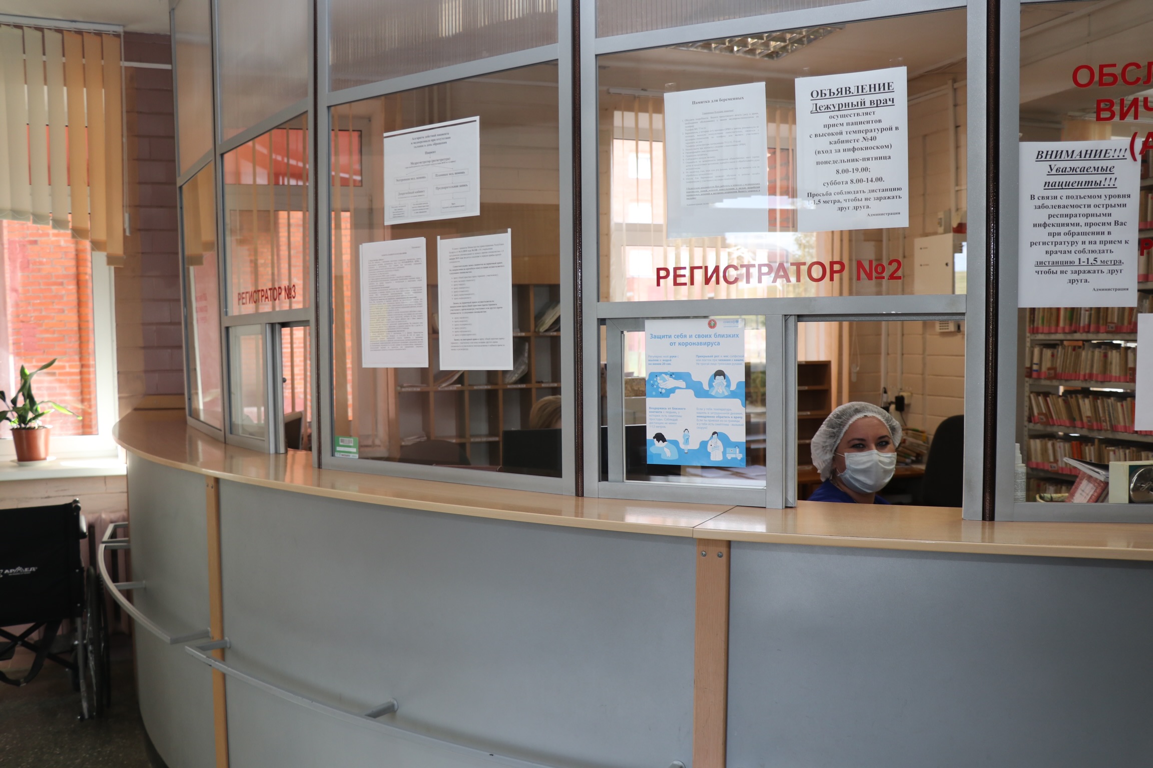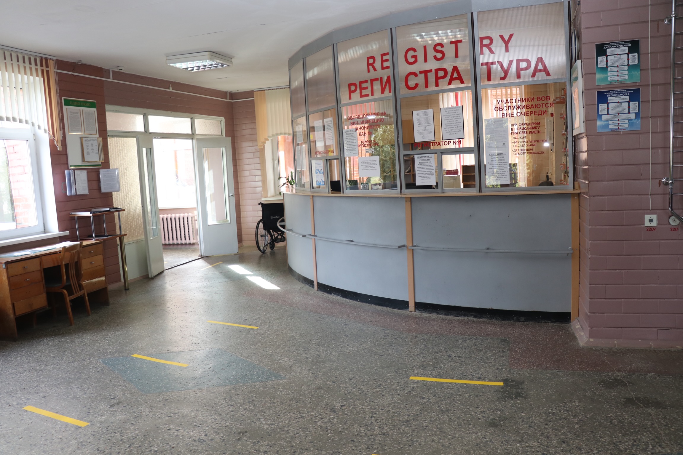 В поликлинике сейчас немноголюдно, даже непривычно видеть пустые коридоры и отсутствие очереди в регистратуру и у кабинетов узких специалистов.