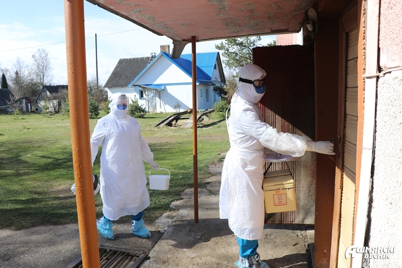 Находиться в таком костюме Екатерине Генюш и ее коллеге, врачу общей практики Артему Станулевичу придется более двух часов. В списке контактов, которые им необходимо посетить, восемь человек. Вроде и немного, но живут они в разных уголках района. Поэтому только на дорогу уйдет более часа, плюс к этому осмотр и забор мазков.