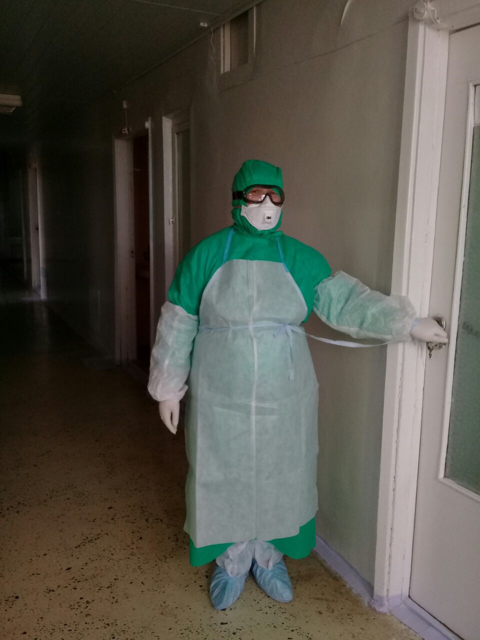 — В экстренных ситуациях такой костюм необходимо надеть за 7 минут. Во время учебных занятий у меня это получилось сделать только за 10, — рассказывает нам Екатерина Генюш, медсестра общей практики терапевтического отделения поликлиники. – Тогда, на тренировке, никто из нас не думал, что придется использовать его в своей работе. Угроза коронавируса была где-то далеко, казалось, что к нам инфекция никогда не придет.