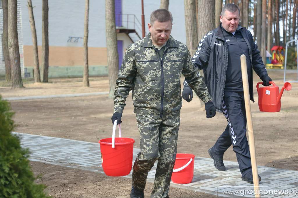 Поддержать масштабную республиканскую акцию вызвались руководство области и города Гродно, трудовые коллективы, представители общественных организаций. Председатель облисполкома Владимир Кравцов, помощник Президента Республики Беларусь – инспектор по Гродненской области Иван Лавринович и председатель Гродненского горисполкома Мечислав Гой во время субботника трудились на благоустройстве оздоровительного лагеря «Зорька юбилейная». В частности, они занялись посадкой вечнозеленых туй возле новых спальных корпусов и уборкой территории.