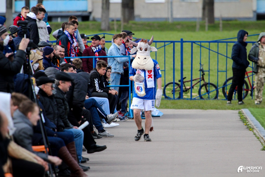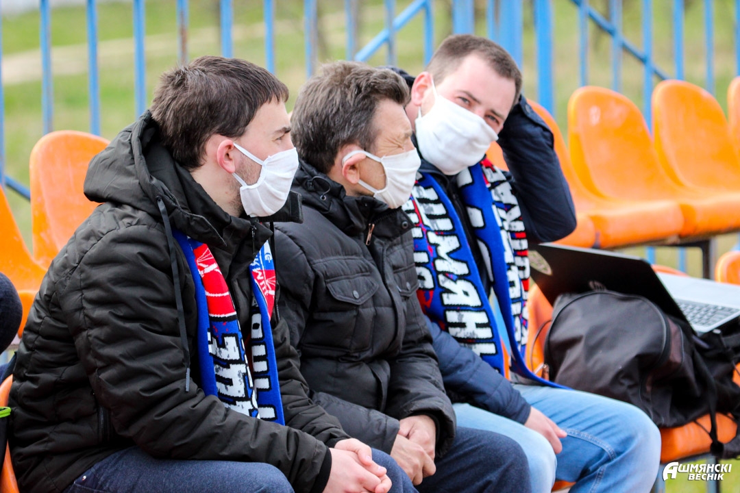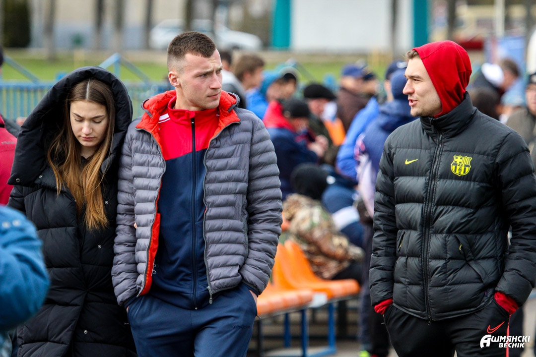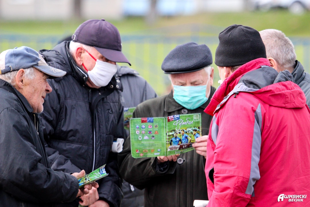 Первый домашний матч сезона собрал ошмянских болельщиков на трибунах стадиона физкультурно–оздоровительного комплекса. Многие любители футбола пришли в масках, некоторые даже смотрели игру из-за пределов стадиона (как–никак массовое скопление людей, его следует избегать).