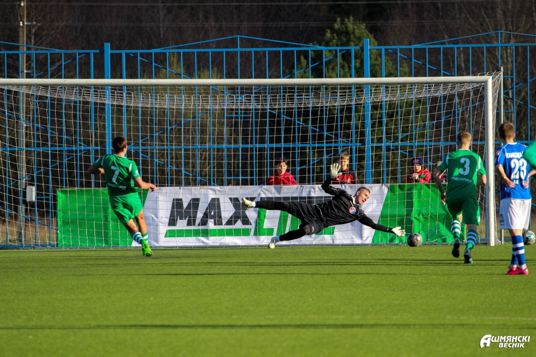 Хороший шанс увеличить счет получили речичане во втором тайме. За нарушение в штрафной площади был назначен пенальти, но вратарь «Ошмян» мастерски отразил 11-метровый.