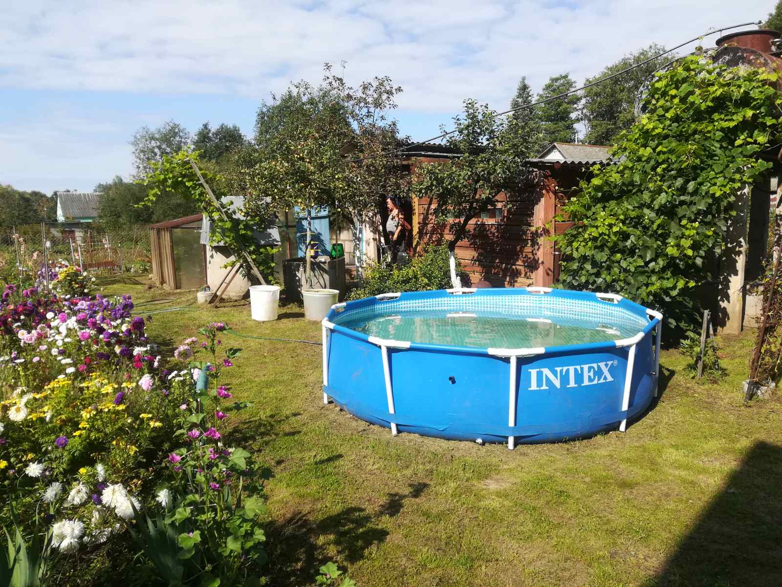 Летам дачны ўчастак Ціхановічаў тоне ў кветках. Як нядзіўна, кветкаводствам больш займаецца Анатоль Пятровіч. Тут слесар па кантрольна-вымяральных прыборах і аўтаматыцы сырзавода знаходзіць адпачынак пасля працы. Гэта яго тэрыторыя і яго ўладанне, дзе ён пастаянна нешта майструе, прыладжвае, залівае падмуроўкі, папраўляе, падфарбоўвае, садзіць, косіць…