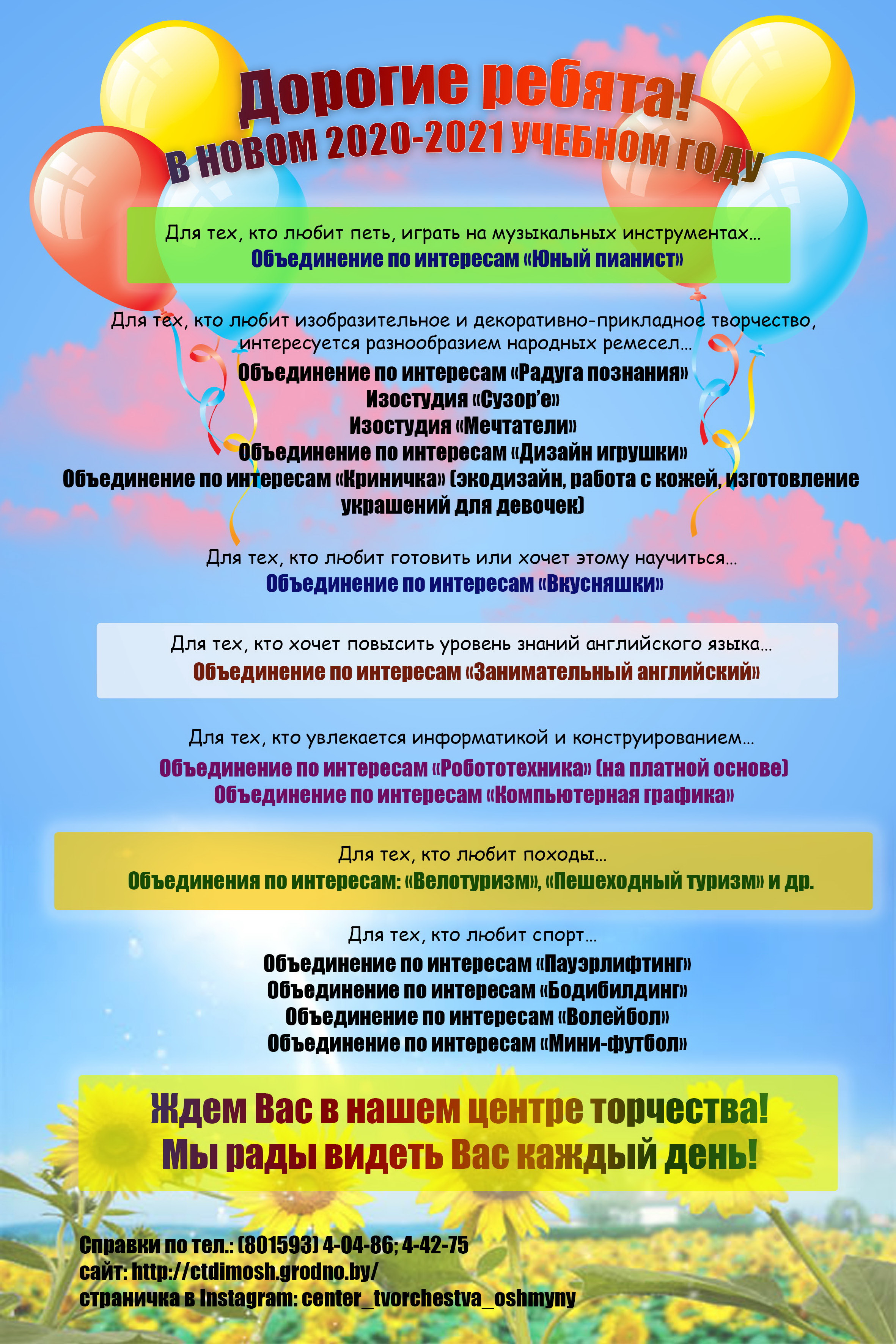 В центре творчества началась запись в объединения по интересам на новый учебный год по различным направлениям: художественное, техническое, декоративно-прикладное, изобразительное, интеллектуальное.