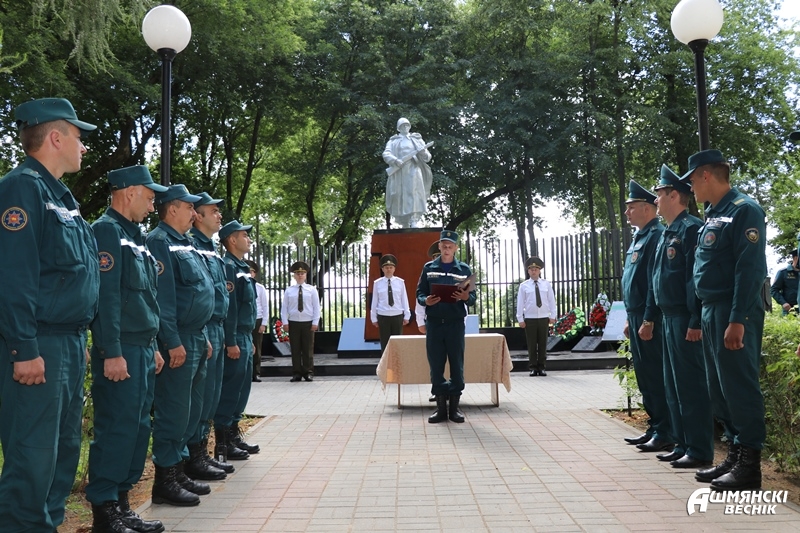 В этом году свой профессиональный праздник ошмянские спасатели-пожарные отметили как никогда торжественно. Начались мероприятия с принятия присяги молодым пополнением коллектива огнеборцев. В городском парке возле возле братской могилы воинов-освободителей клятву на верность Родине и выбронному нелегкому делу по защите населения нашей страны от огненной стихии и других чрезвычайных ситуаций произнесли пожарный ПАСЧ-1 Александр Жабинский, водитель ПАСП-15 Денис Красовский и водитель ПАСП-13 Евгений Маргуж.
