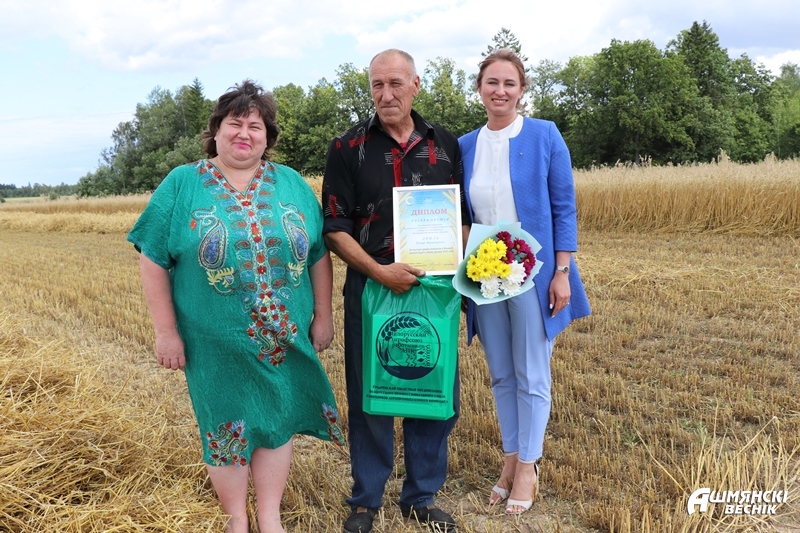Председатель Ошмянского райкома профсоюза работников АПК, депутат Гродненского областного Совета депутатов Раиса Турлай и председатель Ошмянского объединения профсоюзов Юрий Карпович присоединились к поздравлениям. В период уборочной кампании грамоты, благодарности, подарки, денежные вознаграждения от профсоюза получат лучшие комбайнеры, водители, работники зерносушилок, механизаторы.