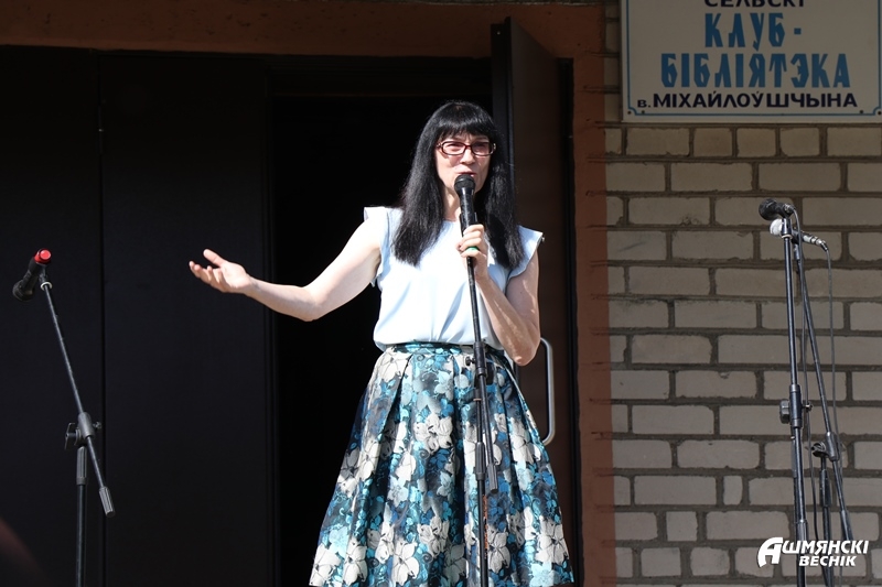 У Міхайлоўшчыне жывуць самыя лепшыя ў свеце людзі, падкрэсліла ў сваім віншаванні яшчэ адна госця – член Саюза пісьменнікаў Беларусі Валянціна Гіруць-Русакевіч. У Валянціны Францаўны родных у Міхайлоўшчыне ўжо не засталося, але яна штогод, нягледзячы на клопаты і турботы, знаходзіць час, каб наведаць родныя мясціны. Да юбілейнай даты любай вёскі саматужна яна выпусціла некалькі экзэмпляраў зборніка сваёй паэзіі, прысвечанай міхайлоўшчынскай старонцы і яе жыхарам.
