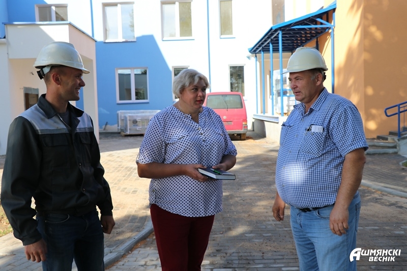 С самого утра здесь уже находилась и заведующая детским садом Татьяна Антоновна Бизукойть, которая поделилась с нами, что сдачи все ждут с нетерпением: как персонал, так и родители. Сегодня она уже встретилась с прорабом ОАО «Строитель» Анатолием Антоновичем Кондрацким и мастером Андреем Станиславовичем Сальмановичем, чтобы узнать о ходе работ.