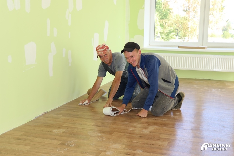 Правая рука мастера Андрея Станиславовича Сальмановича – бригадир Виктор Эдвардович Голомбовский пользуется заслуженным авторитетом у рабочих за его завидное трудолюбие. Кстати, без этого качества здесь нельзя. Например, при такой работе, как укладка линолеума, на которой на данный момент задействованы Станислав Альбертович Рутковский и Михаил Николаевич Карпинский. Они хорошо понимают, что от того, как сработают, зависит их заработная плата. Михаил Николаевич Карпинский в организации недавно, но до этого получил профессии столяра и плотника в Минске и сделал выбор в пользу нашего района, придя в ОАО «Строитель», где его хорошо приняло и руководство, и коллеги по работе, которые щедро делятся с ним опытом своей работы.
