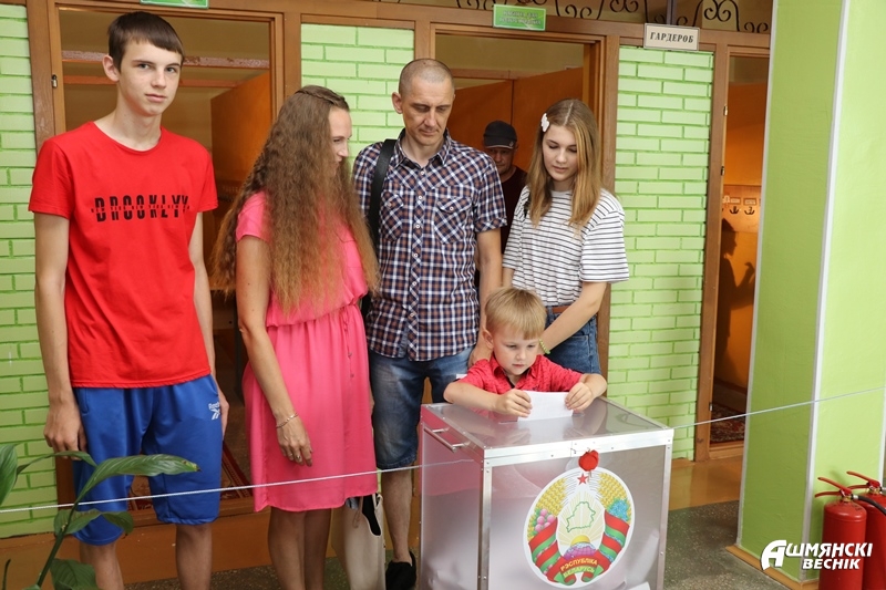 Жители Ошмянского района принимают активное участие в акции «Всей семьей на выборы», стартовавшей на Гродненщине. Активисты районной организации общественного объединения «Белорусский союз женщин» приветствуют избирателей, которые пришли на участок всей семьей.