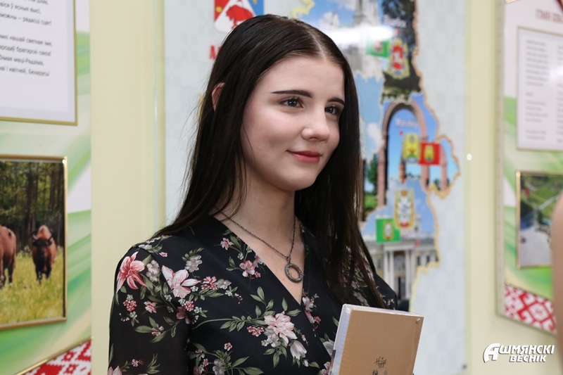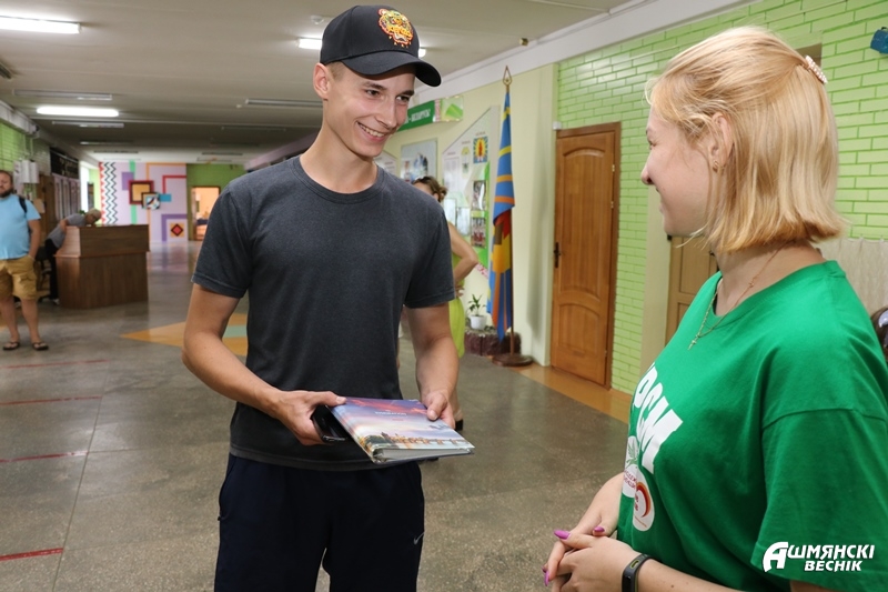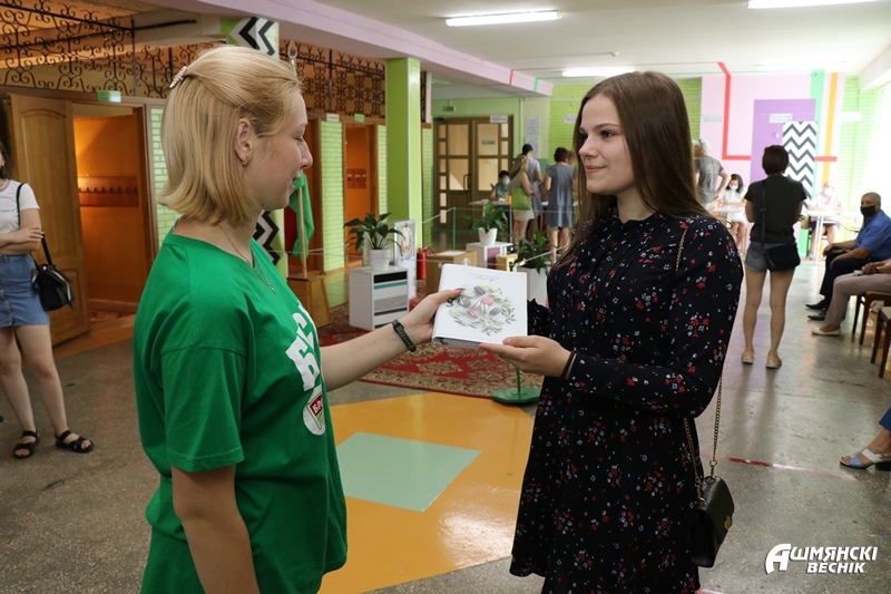 Заместитель секретаря первичной организации ОО БРСМ средней школы №1 г. Ошмяны имени М.М. Гружевского Вероника Пригодская поздравила впервые голосующих и вручила им сувениры.