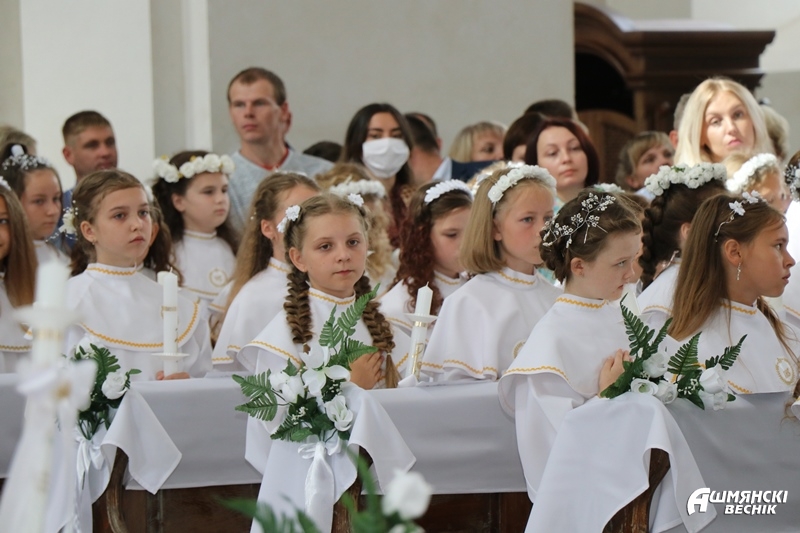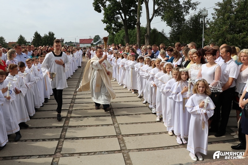 Па-святочнаму апранутыя ў белыя, аднолькавыя ва ўсіх сукенкі, са свечкамі ў руках яны спяшаліся ў каталіцкі храм Ашмян на імшу. У той дзень для дзяўчат і хлопчыкаў, якія павінны былі атрымаць Першую Камунію, было прызначана дзве службы: а восьмай гадзіне раніцы і а дванаццатай дня.