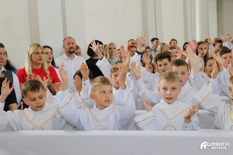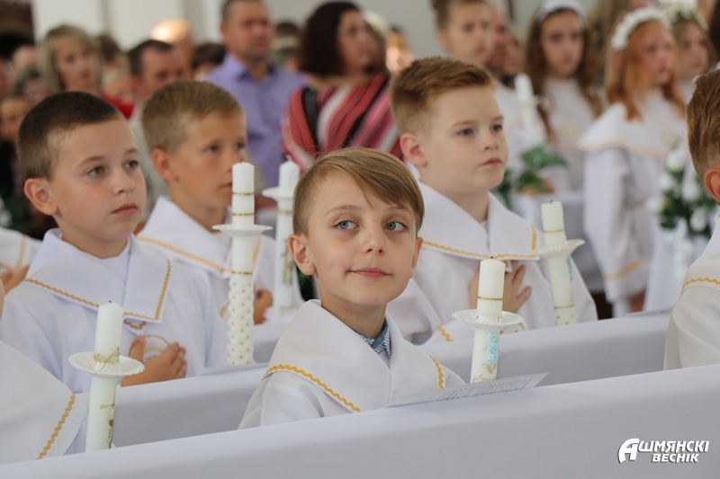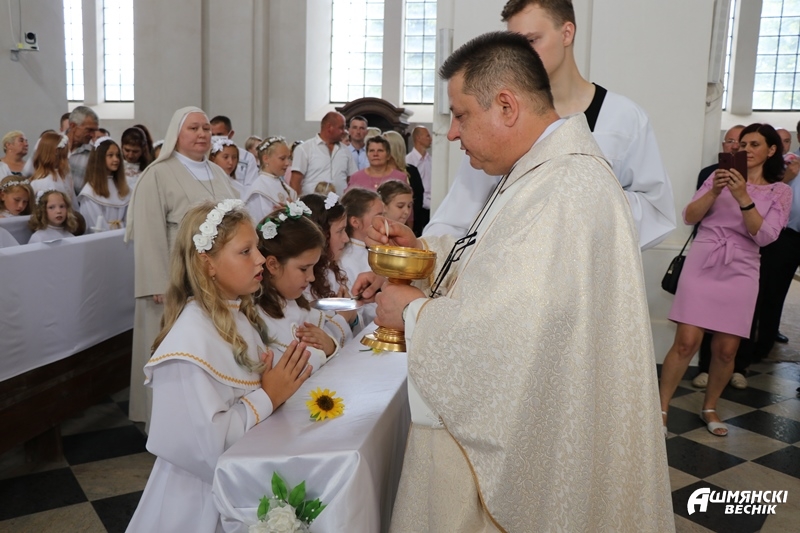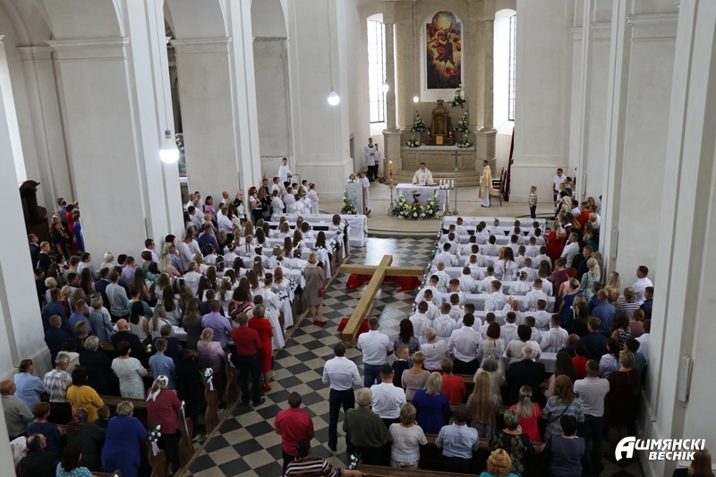 У мінулую нядзелю сакрамэнт Першай Камуніі прайшлі сто восемдзясят дзевяць маленькіх парафіян раёна. Да гэтай важнай падзеі яны доўга і адказна рыхтаваліся, наведваючы ўрокі рэлігіі і святыя службы ў касцёле.