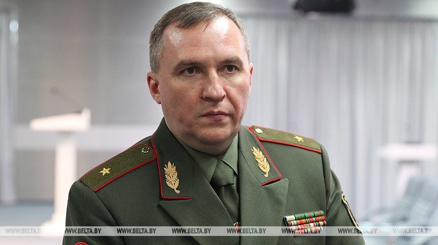 «В рамках выполнения поставленной главой государства задачи по отслеживанию ситуации на сопредельных с Беларусью территориях государств, передвижения войск, мы на сегодняшний день видим, что в рамках операций «Усиленное передовое присутствие» и «Атлантическая решимость» движение войск НАТО происходит на сопредельной территории. В частности, в это время происходит переброска на полигон Пабраде (в Литве. — Прим. БЕЛТА) в 15 километрах от нашей государственной границы 2-го танкового батальона 69-го танкового полка США», — рассказал министр.