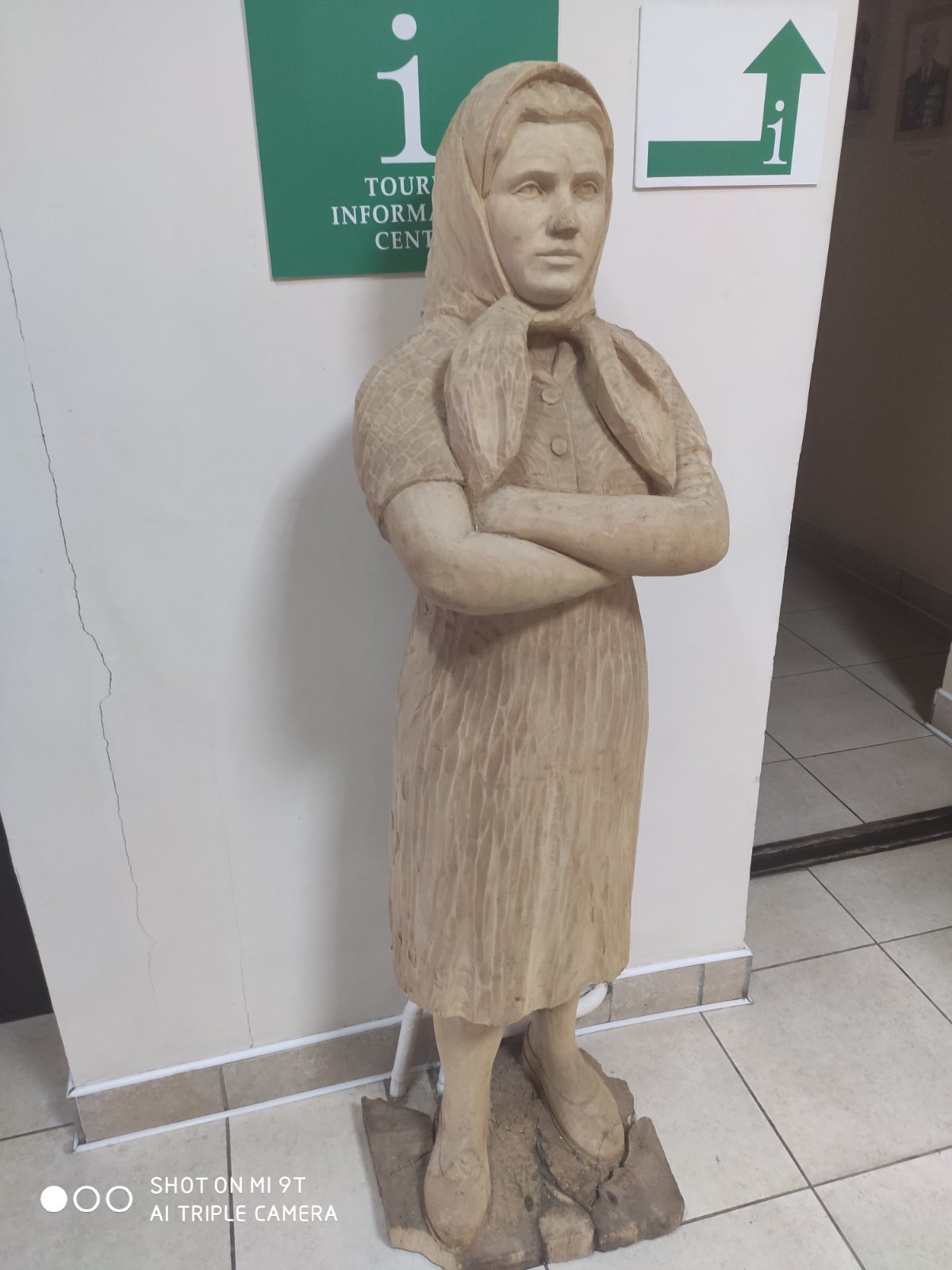 У сховах музея знаходзяцца вырабы з дрэва самадзейнага скульптара Івана Астрамовіча. Так атрымалася, што ў свой час я пісала пра вёску Навасяды, дзе ён нарадзіўся і жыў і нават была ў яго хаце, чула аповед аб ім ад мясцовых жыхароў. Яго знакавая работа — бюст Героя Сацыялістычнай Працы Раісы Цітко захоўваецца ў музеі разам з “Гусляром”, а таксама скульптурай жанчыны, якая зараз упрыгожвае адну з залаў музея. Між сабой супрацоўнікі называюць яе “пашалянкай” – надта ж яна маленькая ў параўнанні са звычайным чалавекам!