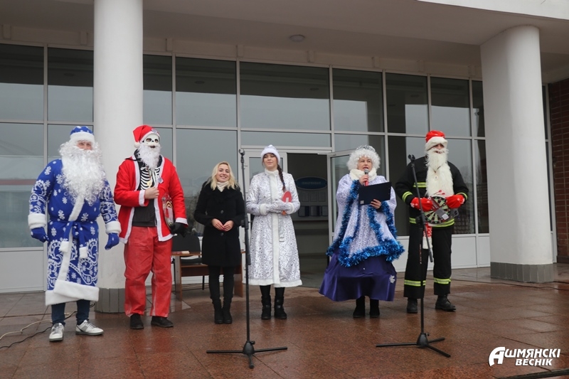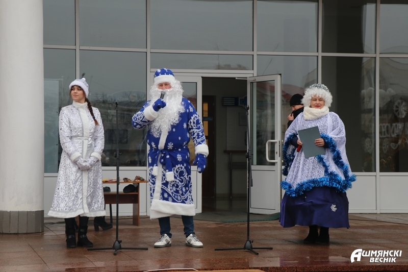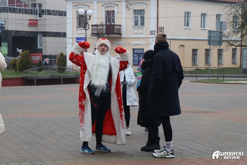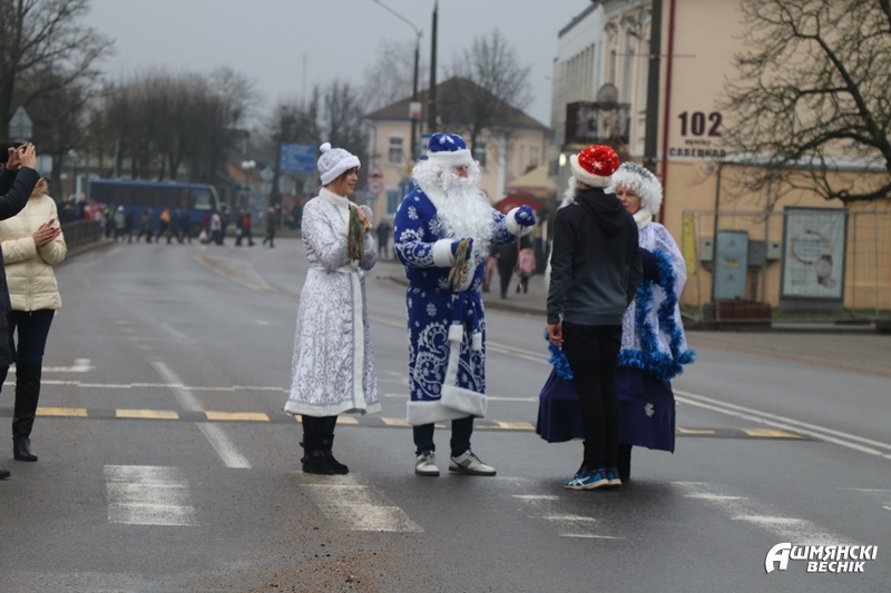 Отсутствие снега — не помеха настоящим чудесам. У главной городской елки города на старт вышли Деды Морозы и Снегурочки Ошмянского района.