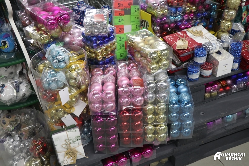 Дабы купить все в одном месте и не тратить время на поиски в других магазинах и на ранке, мы отправились в «Евроопт», расположенный в микрорайоне «Западный». Магазин большой, ассортимент тоже радует. Кажется, это тот вариант, когда в одном месте можно купить практически все: от «Докторской» колбасы для «Оливье» и минералки на утро первого января, до подарков украшений. Однако, все ли, указанное в нашем списке есть здесь? Исследуем.