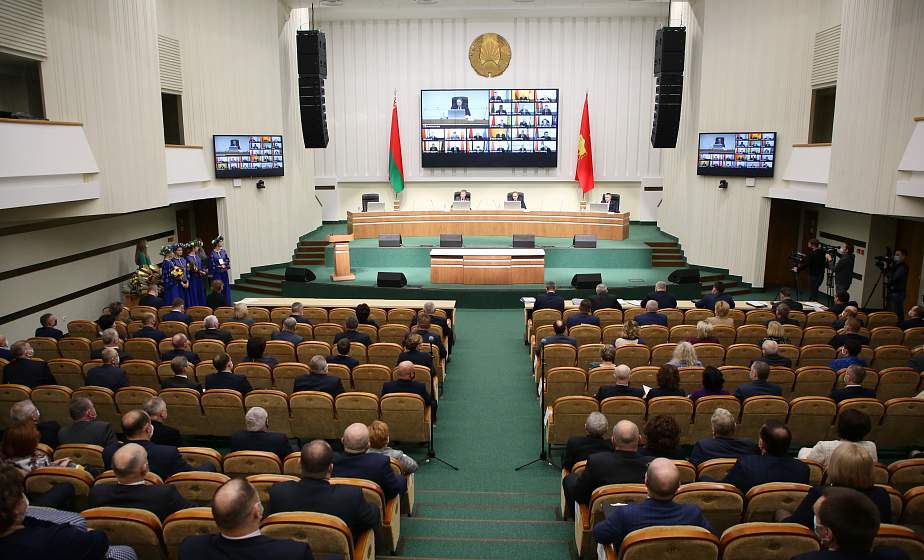 В зале во время заседания находились те, кто в этом году за особые достижения были отмечены высокими государственными наградами. Большая группа работников различных отраслей хозяйства, деятели культуры, искусства, науки и образования удостоены медалей «За трудовые заслуги» и медалей Франциска Скорины. Многим объявлена благодарность Президента Республики Беларусь.