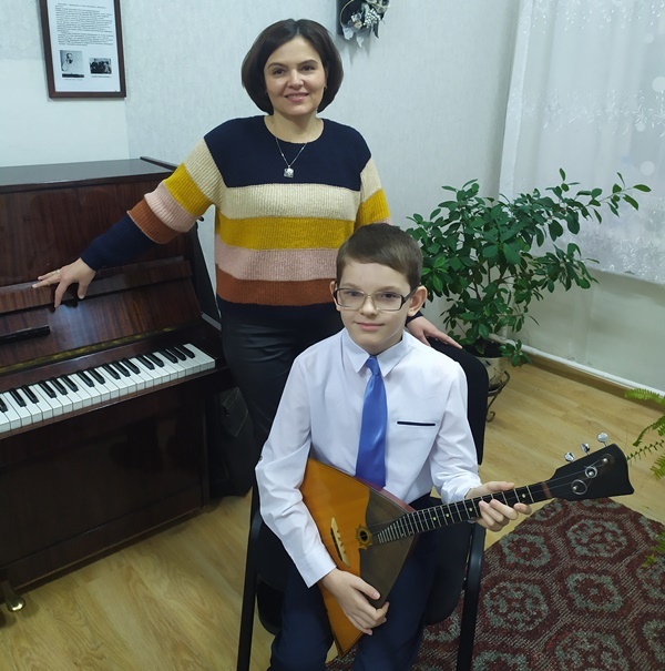 Третьеклассник Авсюкевич Денис осваивает игру на балалайке и, дополнительно, на гитаре. Ему очень повезло с учителем: Ольга Ивановна Павлович — внимательный и опытный педагог, на ее уроках невозможно не работать. Мама и отчим мальчика, Мария Варфоломеевна и Дмитрий Викторович, прикладывают максимум усилий, чтобы обеспечить ребенку необходимые условия для развития, активно участвуя в его творческой жизни. И Денис старается быть благодарным своему учителю и родителям за их внимательное и чуткое отношение к нему, выражая это в старательном отношении к учебе, активно принимая участие в школьных отчетных концертах и фестивалях. Скромность и исполнительность – вот главные черты, которые выделяет у мальчика педагог. Первыми серьезными победами Дениса стали выступления на II Международном фестивале-конкурсе национальных современных искусств «Планета дружбы», где он стал лауреатом I степени, и на II Международном творческом конкурсе «Паруса мечты», где он стал лауреатом III степени.