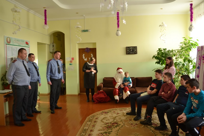Доброй традицией стало посещение сотрудниками Ошмянского РОВД и отдела Департамента охраны детей, обделенных родительских теплом, и тех, кто не может встретить новогодние и рождественские праздники в кругу своей семьи. В этот раз, воплощая в жизнь инициативу руководства Министерства внутренних дел, сотрудники милиции в лице начальника Ошмянского РОВД подполковника милиции Александра Ребо, заместителя начальника по ИРиКО подполковника милиции Ивана Кунявского и старшего инспектора лицензионно-контрольной группы штаба отдела охраны майора милиции Вячеслава Шукеловича не забыли о ребятах из социально-педагогического центра Ошмянского района, на базе которого функционирует детский социальный приют.