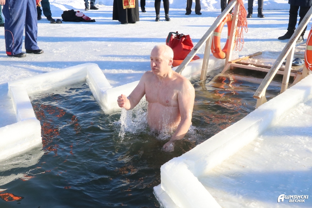 Спакон веку асаблівасцю гэтых дзён студзеня з’яўляецца паніжэнне тэмпературы надвор’я. З прыродай не паспрачаешся. Парадавалі маразамі ашмянцаў і сёлетнія студзеньскія дні. Традыцыйна вадохрышчанскае купанне праводзіцца ў Ашмянах пасля богаслужэння ў храме Уваскрасення Хрыстова. Протаіерэй Пётр Пятлёха, благачынны цэркваў Ашмянскай акругі, і іерэй Сергій Мігель накіроўваюцца на вадаём у квартале Будаўнікоў.