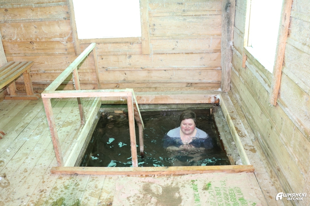 Усе, хто прыйшоў на возера, найперш адзначылі сімвалічны выгляд купелі: ашмянскія выратавальнікі выразалі палонку ў выглядзе праваслаўнага крыжа ў ледзяным абрамленні. Работнікі ААТ “Будаўнік зрабілі драўляныя сходы і парэнчы, каб было зручна падыходзіць да купелі, а затым паднімацца наверх.