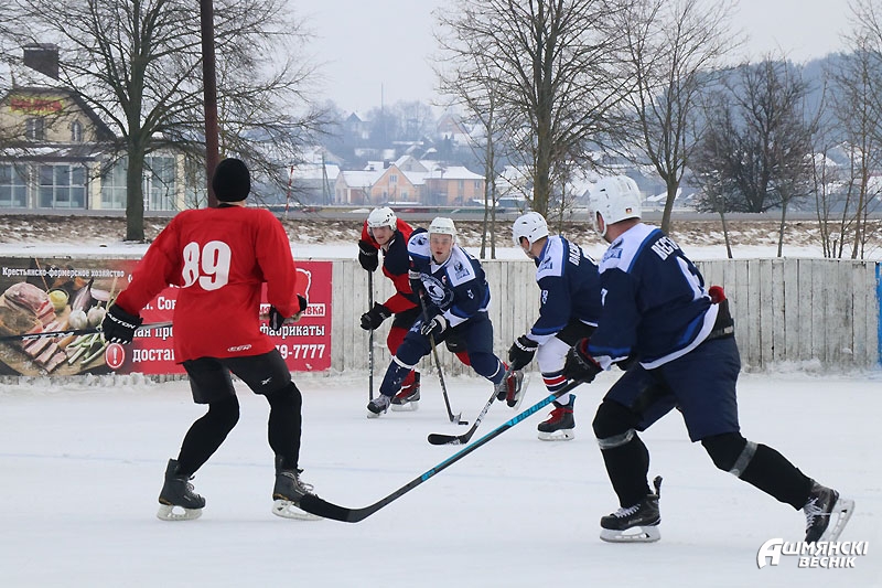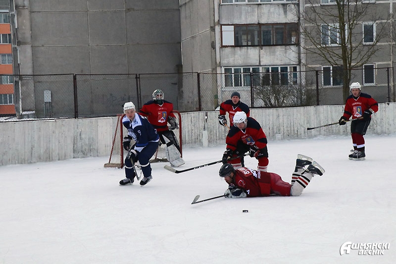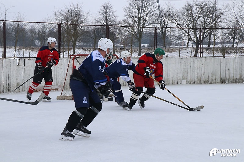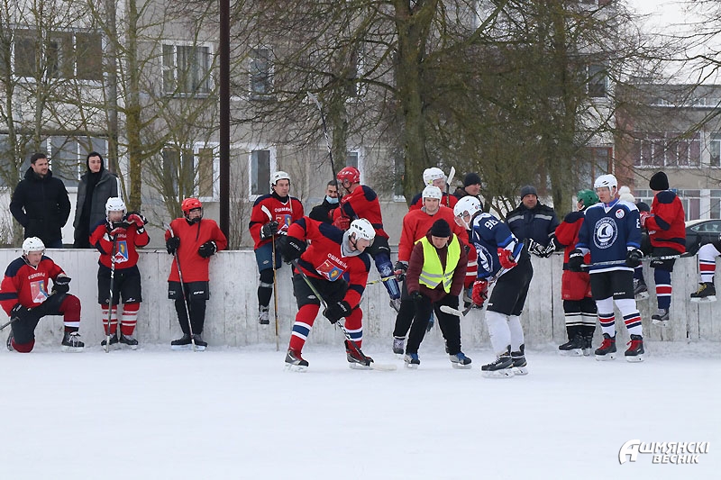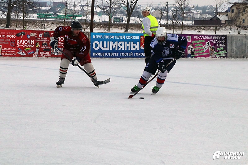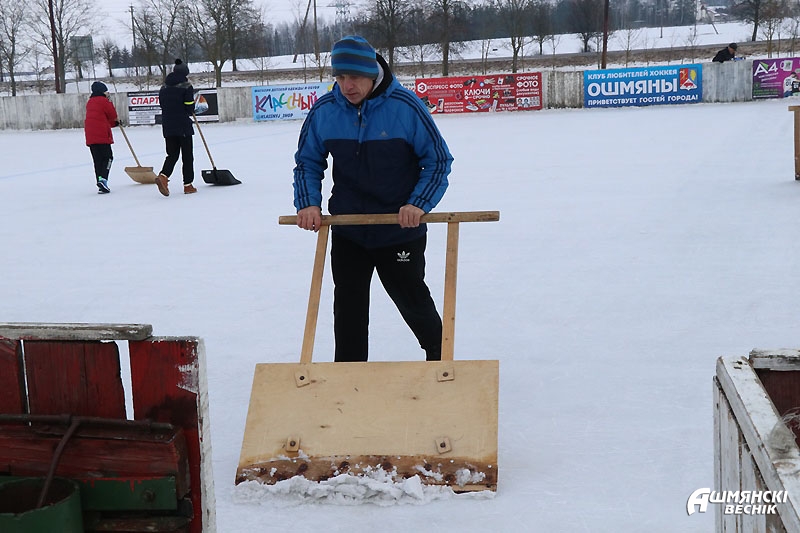 Наблюдая за игрой и присматриваясь к игрокам, можно узнать знакомые лица — на льду ошмянская хоккейная команда, команда любителей. Парни и мужчины охотно участвуют в заливке катка, также охотно тренируются и встречаются, чтобы скрестить клюшки. Обычно это происходит поздно вечером или даже ночью. Не у каждого есть время днем — играют после работы, да и занимать лед, на котором горожане катаются на коньках, тоже не хочется. Впрочем, каток в квартале Строителей далеко не единственная площадка для любителей зимнего хобби. Детей и взрослых принимали также хоккейные коробки возле СШ №1 имени М.М. Гружевского, СШ №2, СШ №3 и гимназии.