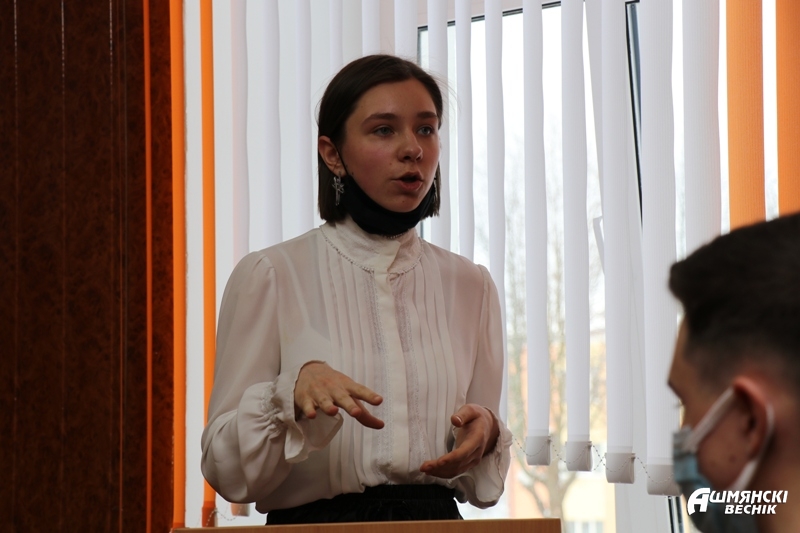 Кристина Специан, ученица СШ №2, член совета школьного музея, предложила создать культурно-просветительский маршрут в рамках Союзного государства, который пройдет по знаковым местам Ошмянского района. Один из них, уже разработанный школьниками, посвящен событиям Первой мировой войны и включает в себе три точки на карте района. К обсуждению присоединились присутствующие молодые люди, которые предложили создать свой примечательный маршрут энтузиастам из каждой школы.
