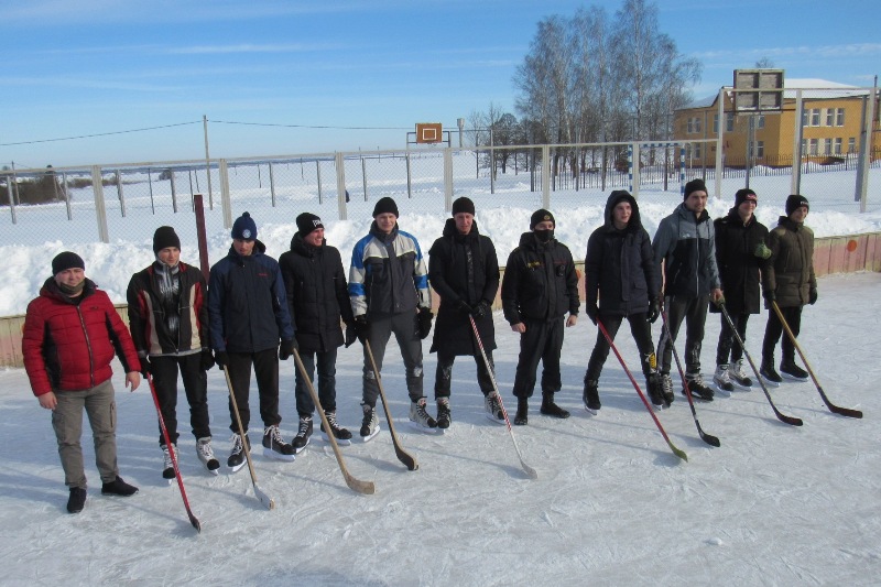 В канун Дня защитников Отечества впервые на хоккейной коробке Крейванцевского учебно-педагогического комплекса состоялась товарищеская встреча по хоккею с шайбой. Команды оказались сборные.