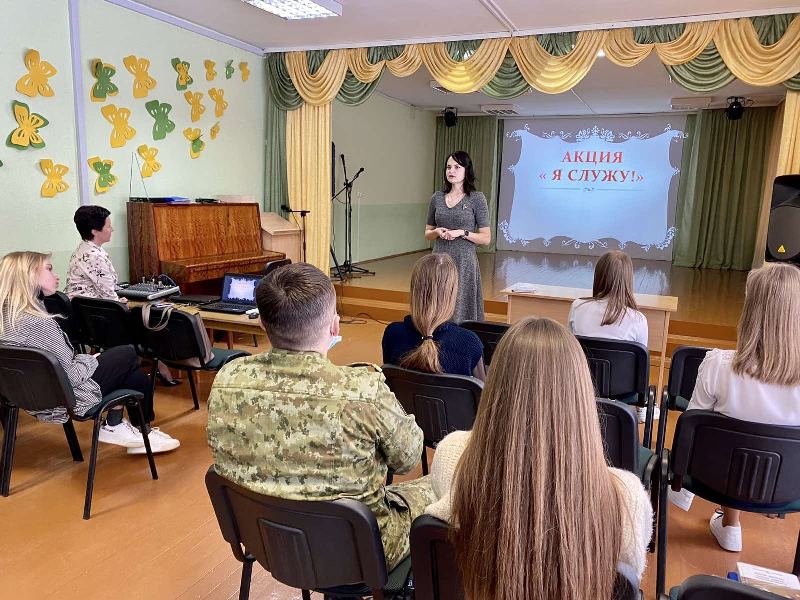 В рамках акции #ЯСлужу! в первичной организации ОО «БРСМ» ГУО «Средняя школа №3 г.Ошмяны» прошла встреча девятиклассников с заместителем начальника пограничного поста «Клевица» по идеологической работе — Евгением Ивановичем Ярмошем.