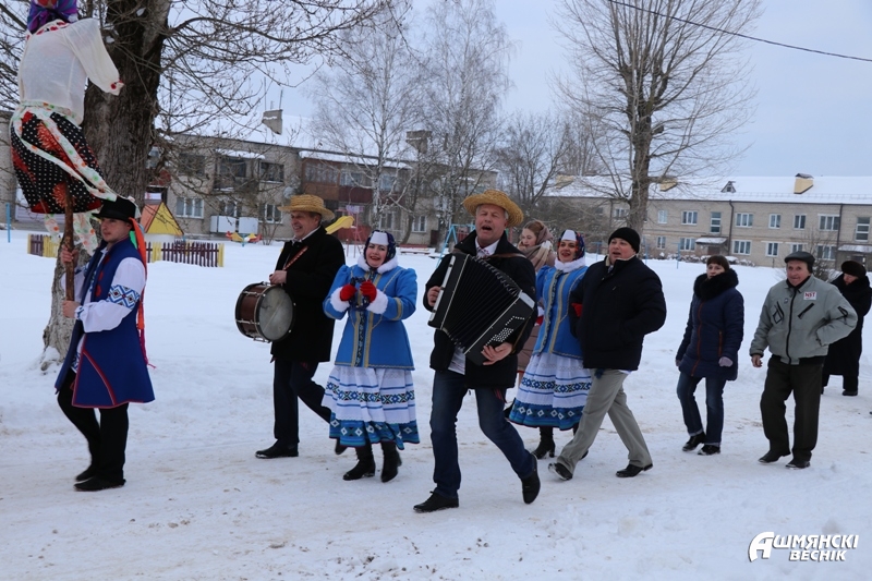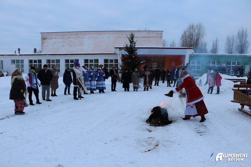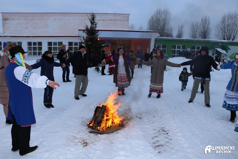 Свята пачалося на вуліцах аграгарадка. Тэатралізаванае шэсце з лялькай-пудзілам, пераапранутымі артыстамі і музыкантамі, запрэжаным у сані канём запрасіла жыхароў далучыцца да агульных вячорак. На вуліцу з хат выходзілі мясцовыя жыхары і выносілі старыя рэчы, клалі ў сані, каб пасля спаліць іх на вогнішчы. Спадніцу лялькі-пудзіла кожны ўдзельнік свята імкнуўся парваць на шматкі. Людзі ведаюць, што шматок спадніцы належыць закапаць у зямлю на сваім агародзе з надзеяй і блаславеннем на будучы багаты ўраджай. Пад музыку і карагод абрад спальвання старых рэчаў плаўна перайшоў у канцэртную праграмму народнага ансамбля “Крыніцы”.