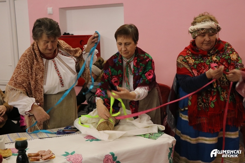 Жанчыны з вялікім стажам сямейнага жыцця ўрачыста прынялі ў сваё жаноцкае кола маладзіцу, якая ў мясаед выйшла замуж, і яе сямейны стаж налічвае толькі некалькі месяцаў.