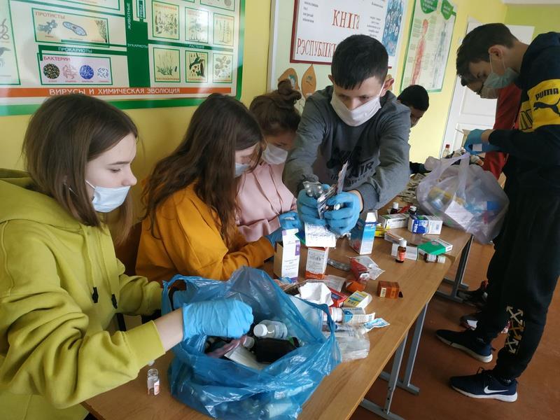 Особый интерес у школьников вызвала работа мини-лаборатории по сортировке просроченных лекарств. Учащиеся 8 класса, используя средства индивидуальной защиты, произвели сортировку препаратов, которые принесли ребята после проверки домашних и автомобильных аптечек. Анализ результатов сбора показал высокий уровень знаний наших жителей по данной проблеме. В весенний период 2020 года сбор просроченных лекарств был намного выше, чем в минувшем году. Значит, наши действия, информирование жителей о вреде просроченных лекарств повысило экологическую культуру и содержание аптечки на контроле. Вес собранных таблеток в этом году составил 3,2 кг, а год назад был 7 кг.