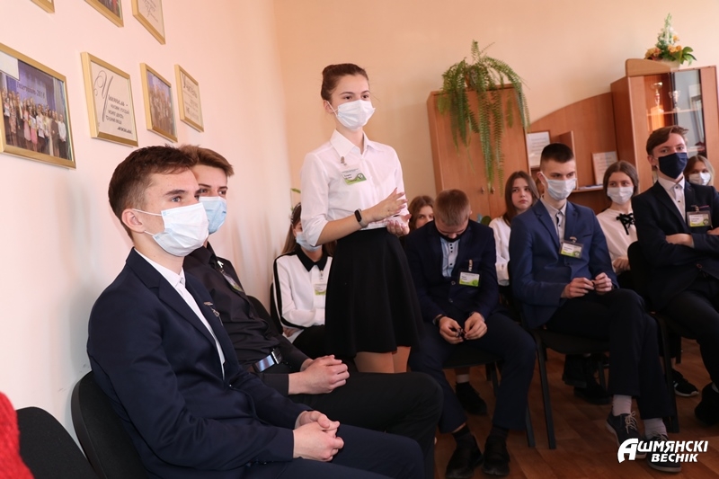 В гимназии № 1 прошел открытый диалог «БРСМ: вчера, сегодня, завтра». В нем приняли участие заместитель председателя райисполкома Андрей Клышевский, первый секретарь районного комитета общественного объединения «БРСМ» Виктория Прецкайло-Мисюта, директор гимназии № 1 Ольга Саванец, школьники, а также представители работающей молодежи.