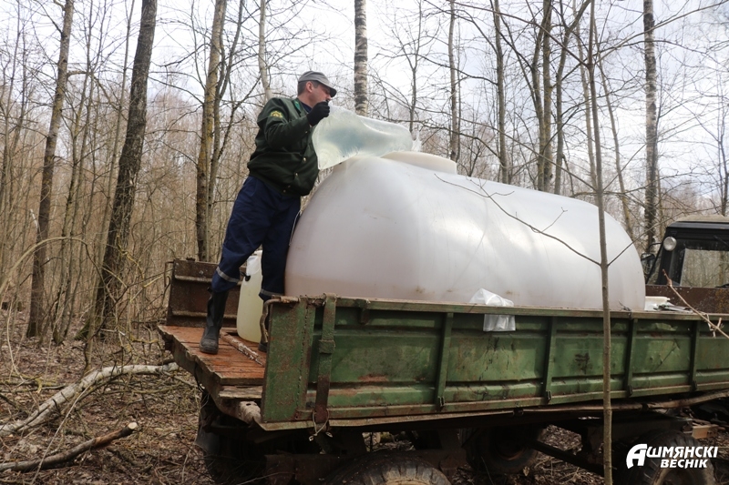 Сбором сока занимаются лесники. Как, например, в обходе Юрия Масловского в пятнадцати километрах от лесничества возле деревни Гроди. Именно он сообщил нам, что уже есть первый сбор сока – 30 марта отправлено заготовителю три тонны сока. В день нашего приезда шел сбор еще одной партии. Эту работу выполняли лесники Леонид Жаворонков, Андрей Боярович, Сергей Дукель. За соком прибыла машина с емкостями из Молодечно, за рулем которой находился начальник производства ООО «ЭПЛЛАЙН» Аркадий Осипович. Их предприятие заключило договор со Сморгонским лесхозом на закупку сырья, которое потом идет на производство березового сока, березово-яблочного, березово-смородинового. Предприятие существует уже более 10 лет и специализируется на производстве яблочного сока, но в сезон заготовки березового производит и этот напиток.