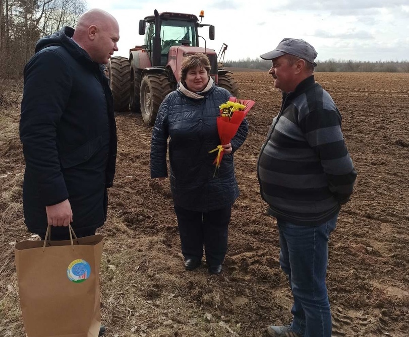 Кроме изучения положения дел на местах, начальник райсельхозпрода Андрей Гордей совместно с председателем райкома профсоюза работников АПК Раисой Турлай стремятся поддержать лучших работников посевной и морально, и материально. Слова благодарности за труд, подарки — традиционная миссия. И этот посевной сезон не стал исключением. Прямо в поле они выразили благодарность и вручили подарок механизатору КСУП «Крейванцы» Гендрику Шавелю, на мехдворе в Борунах в присутствии механизаторов поблагодарили за труд и наградили подарком тракториста–машиниста Ивана Капыша. По словам председателя Ошмянского райкома профсоюза работников АПК Раисы Турлай, традиция чествования людей труда будет продолжена. Ее поддержал начальник райсельхозпрода Андрей Гордей, выразив убеждение, что в сельхозотрасли немало трудолюбивых и ответственных работников, среди которых и молодежь, и опытные кадры.