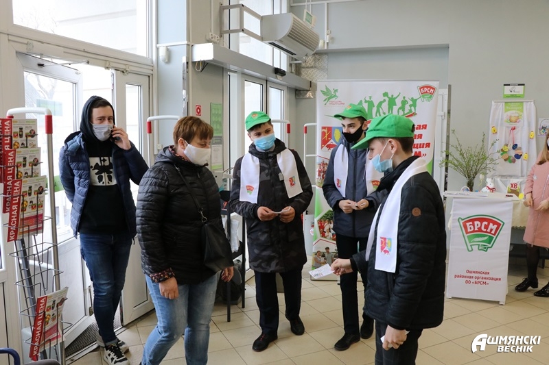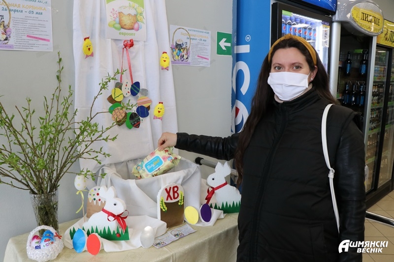 На ўваходзе ў магазін “Евроопт” па завулку 17 Верасня, 6а. яны сустракалі наведвальнікаў і прапаноўвалі ім зрабіць свой унёсак у добрую справу дапамогі тым людзям, якім цяжка самастойна падрыхтавацца да свята Вялікадня.