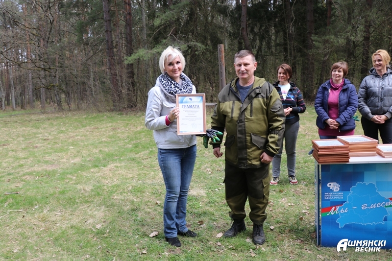 Председатель районного объединения профсоюзов Юрий Карпович грамоты объединения вручил Марине Свирбутович (гимназия №1), Татьяне Черской (Ошмянская детская школа искусств), Александру Буткевичу (центр банковских услуг ОАО «АСБ Беларусбанк»), Ирине Литвинович (ОАО «Радиотехника»), Антонине Семеновой (районный центр гигиены и эпидемиологии), Татьяне Сергей (Ошмянский участок почтовой связи), Татьяне Бабенко (районная ветстанция), Елене Войшнарович (филиал «Аавтопарк №13»), Алесю Командирчику (ДЭУ-57).