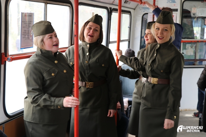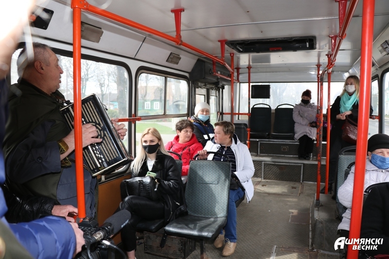 Едва услышав звуки баяна из приближающегося автобуса, пассажиры заглядывали в салон, прохожие улыбались, а водители, проезжавшие мимо, замедляли ход. “Поющий автобус”, звонкие мелодии баяна и приятные голоса артистов в военной форме уносили в далекое прошлое и переносили в реальность картинки военных лет. Пассажиры внимательно вслушивались в композиции, подпевали артистам и аплодировали. А некоторые ошмянцы, заслушавшись, проезжали свою остановку или же успевали выходить в последний момент.