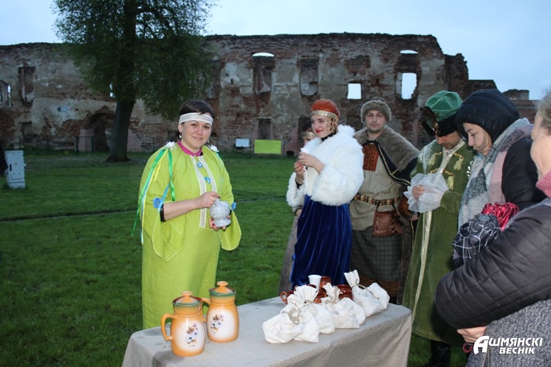 Майскі вечар выдаўся не па-вясенняму халодным, аднак гэта не перашкодзіла аматарам гісторыі і містыкі сабрацца ля сцен выбітнага помніка архітэктуры. Тым больш, мясцовая траўніца частавала гасцей гарачым травяным чаем па асабліваму старадаўняму рэцэпту. Аднак не толькі духмяны напой саграваў шматлікіх гледачоў – работнікі раённага цэнтра культуры падрыхтавалі мноства сюрпрызаў і нечаканых падарункаў для наведвальнікаў.