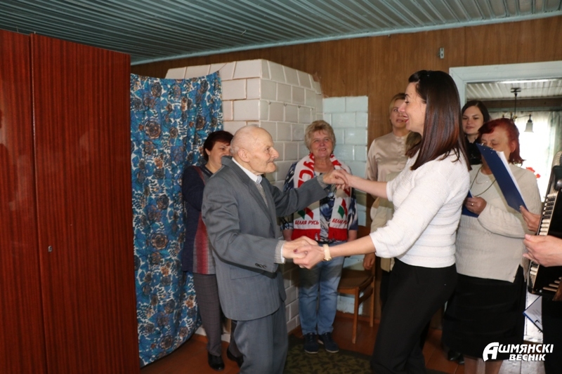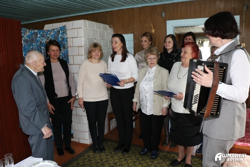У дзень юбілею Казімір Іванавіч крыху хваляваўся – столькі людзей прыехала да яго ў госці! Утульная і светлая хата ветэрана адразу напоўнілася гаманой і песнямі. З дзевяностапяцігоддзем павіншавалі шаноўнага юбіляра адказны сакратар раённага савета ветэранаў Галіна Яшына, галоўны бухгалтар райкама прафсаюза работнікаў аграпрамысловага комплексу Аксана Людкевіч, старшыня Каменналогскага сельвыканкама Вольга Сінкевіч, першы сакратар райкама БРСМ Вікторыя Працкайла-Місюта, бухгалтар раённай арганізацыі РГА “Белая Русь” Алена Грышчанка, супрацоўнікі аддзялення дзённага знаходжання для грамадзян пажылага ўзросту ТЦСАН Ларыса Сурынава і Аксана Бітэль разам з групай валанцёраў, якія зладзілі для ветэрана цэлы канцэрт. Падарунак і найлепшыя пажаданні перадала юбіляру старшыня раённай арганізацыі Беларускага фонду міру Тамара Суравец.