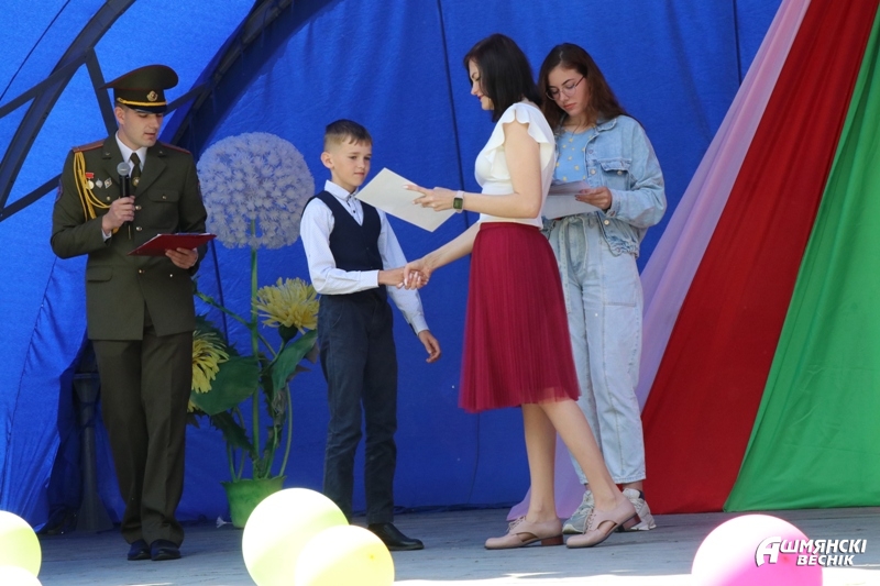 Праздничная программа включала также награждение победителей районных этапов республиканских конкурсов «Спасатели глазами детей», «СемьЯ безопасности» и олимпиады «Школа безопасности», проводимых по инициативе МЧС. Инспектор сектора пропаганды и взаимодействия с общественностью Ошмянского РОЧС Вадим Галговский вместе с первым секретарем РК БРСМ Викторией Прецкайло – Мисюта и заместителем начальника Ошмянского участка БДПО Лилией Селистровской вручил детям и коллективам учреждений образования грамоты и подарки. В творческом конкурсе «СемьЯ безопасности» активно проявили себя родители. В номинации «Песня» победу одержала семья Колгановых, в номинации «Поэзия» — Садовских, в номинации «Проза» — Почечуевых. Нужно отметить, что семья Почечуевых заняла также первое место в областном этапе конкурса и представит наш район на республиканском уровне.