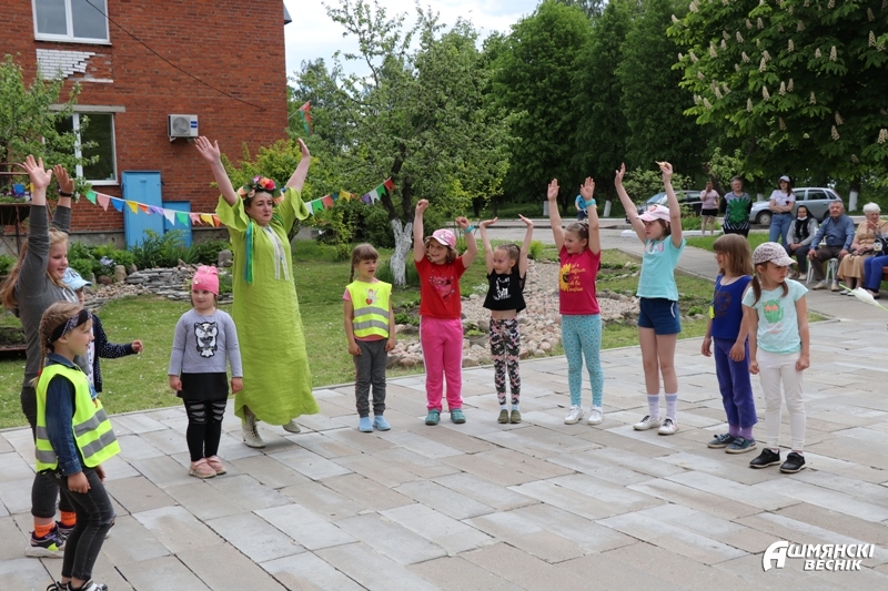 На пляцоўцы перад Домам культуры было весела і тлумна. “Ура! Зажигай детвора!” – пад такім дэвізам прайшло свята, зладжанае работнікамі культуры. Казачныя персанажы ў яркіх касцюмах праводзілі з дзецьмі актыўныя гульні і вучылі іх танцаваць. Гасцей чакаў канцэрт з удзелам маленькіх артыстаў, якія наведваюць творчае аб’яднанне пры мясцовым аддзеле культуры. Зацікавіла дзятву магчымасць зрабіць аквагрым. Каб атрымаць на шчацэ малюнак у выглядзе дзяржаўных сімвалаў Беларусі ці кветкавага арнаменту, жадаючыя станавіліся ў чаргу.