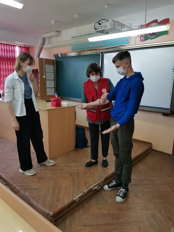 Прошли мастер-классы по обучению членов первичных организаций БОКК и волонтеров способам оказания первой помощи, которая может спасти жизнь. Участники учились оказывать помощь пострадавшим при травмах и раненениях, останавливать кровотечение и перевязывать раны, спасали при непроходимости дыхательных путей, сердечно-легочной реанимации. Кровь, осколки — все приближено к реальным условиям с помощью качественного грима. Большое внимание было уделено практической части, ведь даже взрослые люди часто допускают ошибки в критических ситуациях. Участниками мастер-классов стали работники ОАО «Строитель», ученики 10-х классов СШ № 2 и СШ № 3 во время проведения сборов по допризывной медицинской подговке.