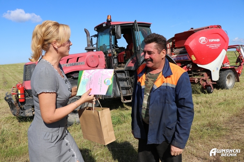 Ответственно и добросовестно трудятся на прессовании сенажа тракторист Николай Альшук в экспериментальной базе «Боруны», на отвозке зеленой массы — водитель Виталий Блажевич в КСУП «Крейванцы», на измельчении трав — тракторист Александр Суровец в КСУП «Краковка». Благодарность за труд, подарки, пожелания успехов и хорошей погоды механизаторам адресовали Юрий Карпович, Оксана Людкевич и специалисты хозяйств.