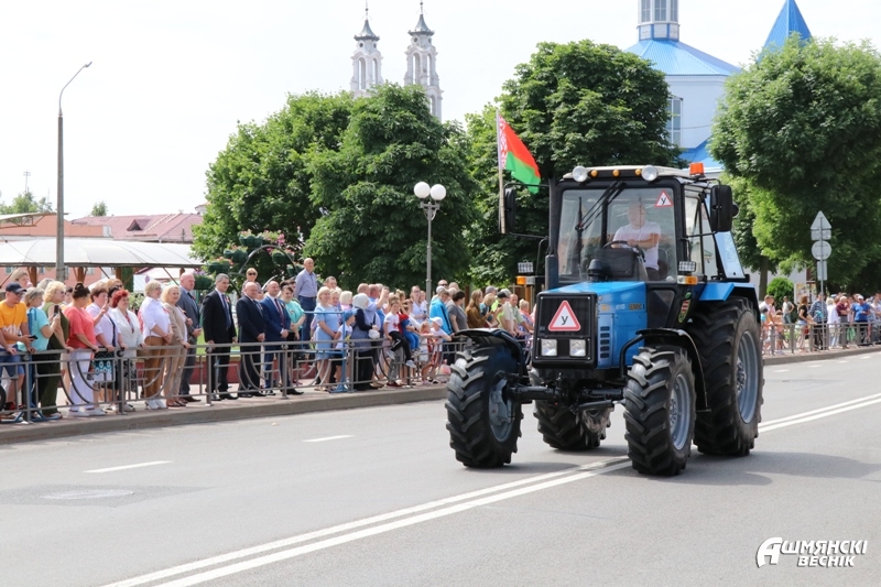 Яркой фишкой праздничной программы стал парад специализированной и сельскохозяйственной техники, в котором приняли участие практически все организации и предприятия района. Комбайны, трактора, автомобили скорой помощи, спецтехника РОЧС и РОВД, районного отдела Департамента охраны, техника, имеющаяся на вооружении у жилищно-коммунальной службы, дорожных организаций, автобусы, занятые на подвозе детей в учреждениях образования – все это вызывало неподдельный интерес не только среди юных посетителей праздника, но и взрослых. На площадке возле РДК технику можно было рассмотреть детально и сфотографироваться на ее фоне. К слову, в возможности почувствовать себя водителем и посидеть в кабине авто желающим никто не отказывал.