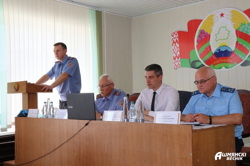 Коллектив районного отдела внутренних дел подвел итоги оперативно-служебной деятельности за первое полугодие текущего года. В оперативном совещании приняли участие временно исполняющий обязанности по должности заместителя начальника УВД Гродненского облисполкома Вячеслав Строчинский, председатель райисполкома Владислав Гершгорин, прокурор Ошмянского района Сергей Ковальчук, начальник районного отдела Следственного комитета Виктор Мацевич и начальник районного отдела Департамента охраны МВД Иван Вержинский.