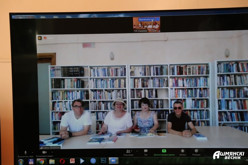 У Ашмянах за круглым сталом сабраліся ўдзельнікі клуба “Сустрэча” і работнікі бібліятэкі, а ў горадзе над Нёманам іх віталі старшыня арганізацыі Людміла Кебіч і аўтары: Дзмітрый Радзівончык, Ганна Савіцкая-Скаржынская і Андрэй Татур.